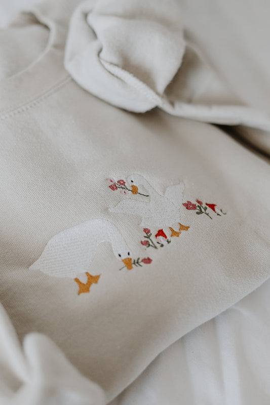 floral goose embroidered crewneck